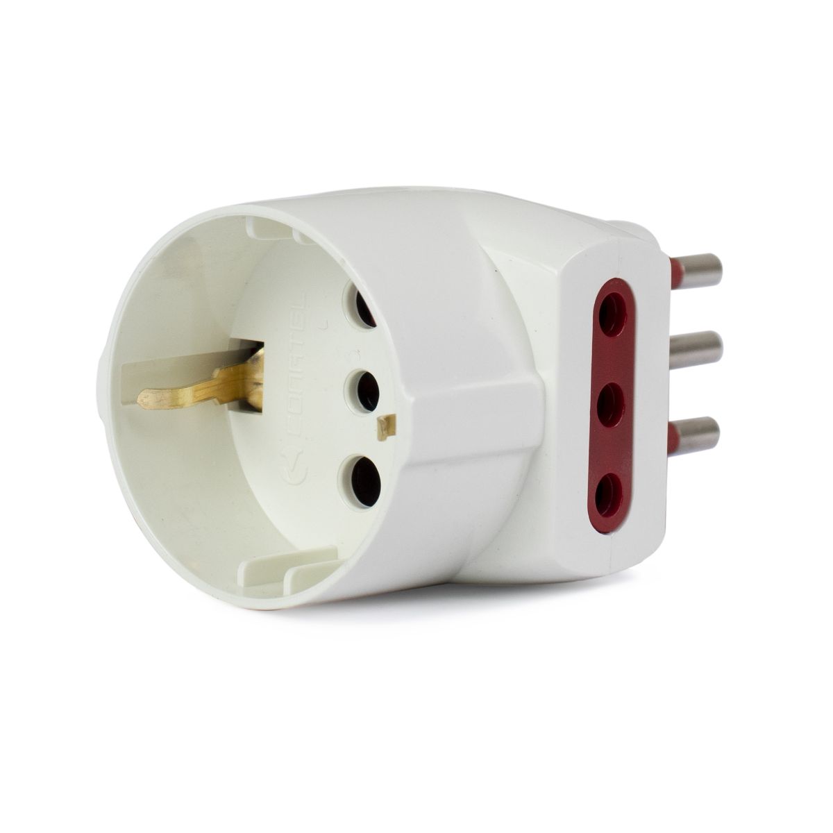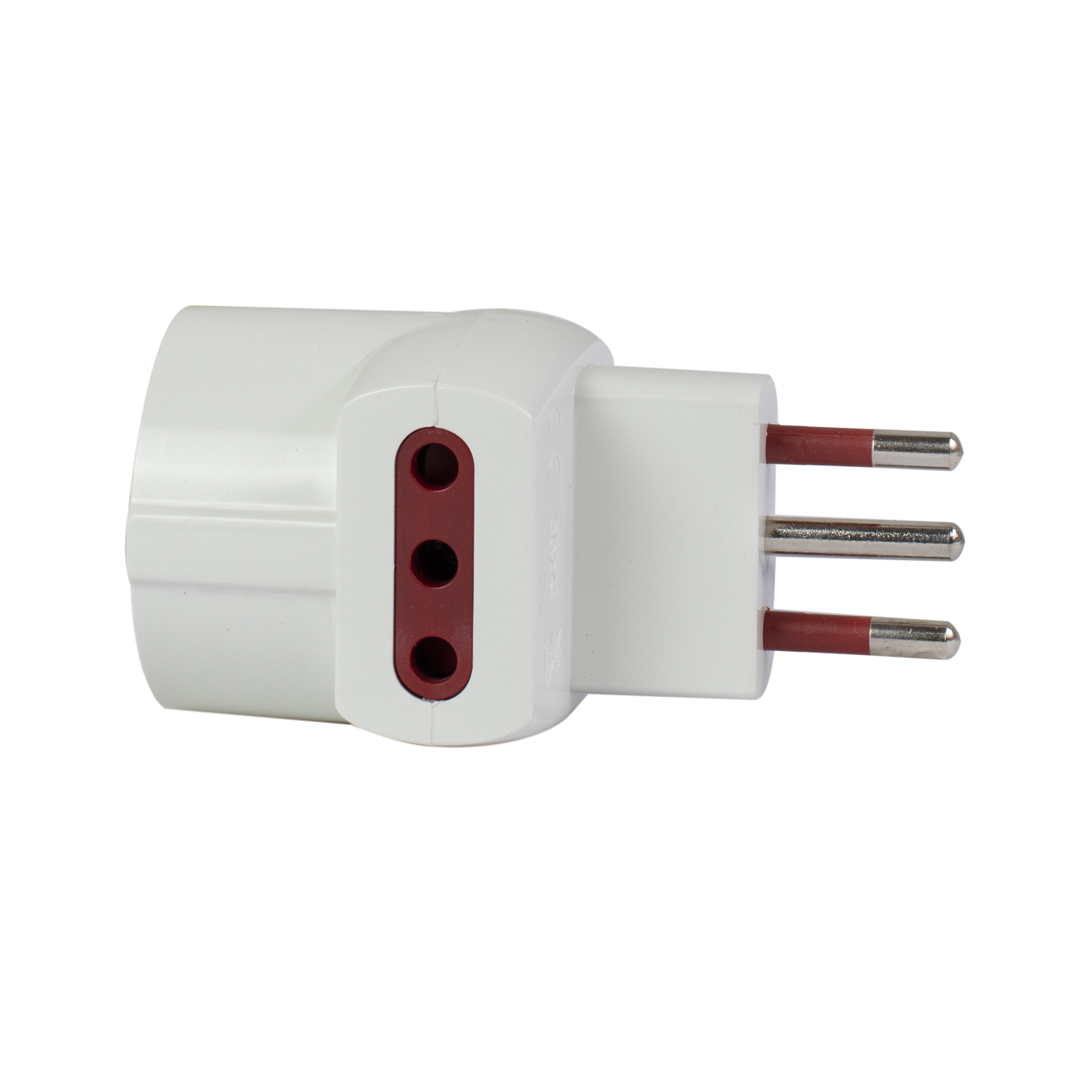 Adaptador Conatel Schuko + 2 tres en linea a 3 en linea. Amperaje: 10. Color: Blanco.