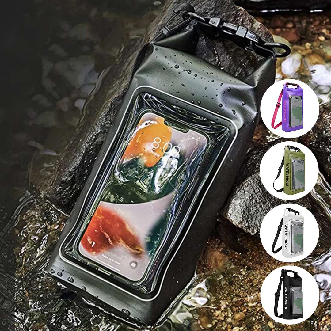 Bolsa impermeable con compartimiento para celular.