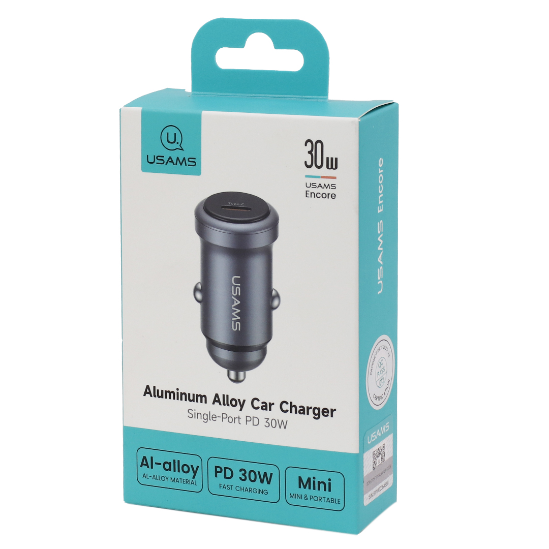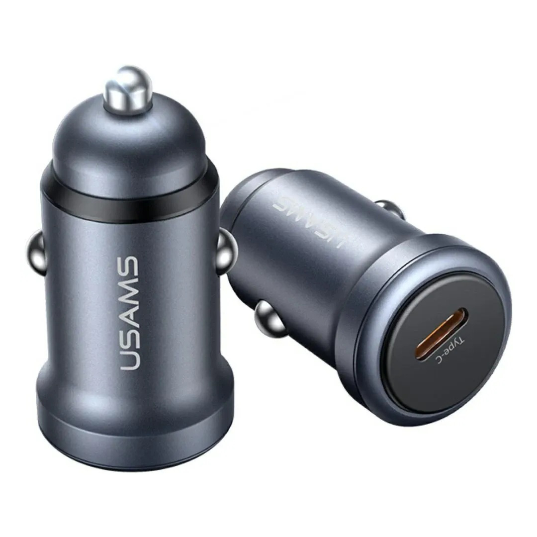 CARGADOR AUTO USAMS TIPO C 30W PD GRIS (JTUSAM005)