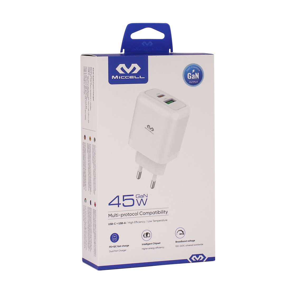 CARGADOR MICCELL VQ-T12 45W USB-C + USB BLANCO (JTMICC092)