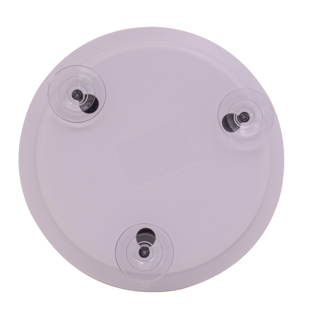 Espejo redondo de 15 cm de diámetro de diseño compacto, liviano, haciendo un espejo funcional y portátil. Cuenta con 3 ventosas en su parte de atrás, para poder ser colocarlo en todas superficies planas. Este espejo tiene la particular característica de aumento X5 ideal para un maquillaje perfecto.