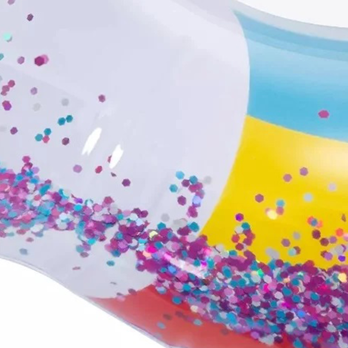 Inflable de piscina colorido con purpurina. El interior con purpurina reflejará la luz y brillará con el sol para que tu Inflable se vea genial.