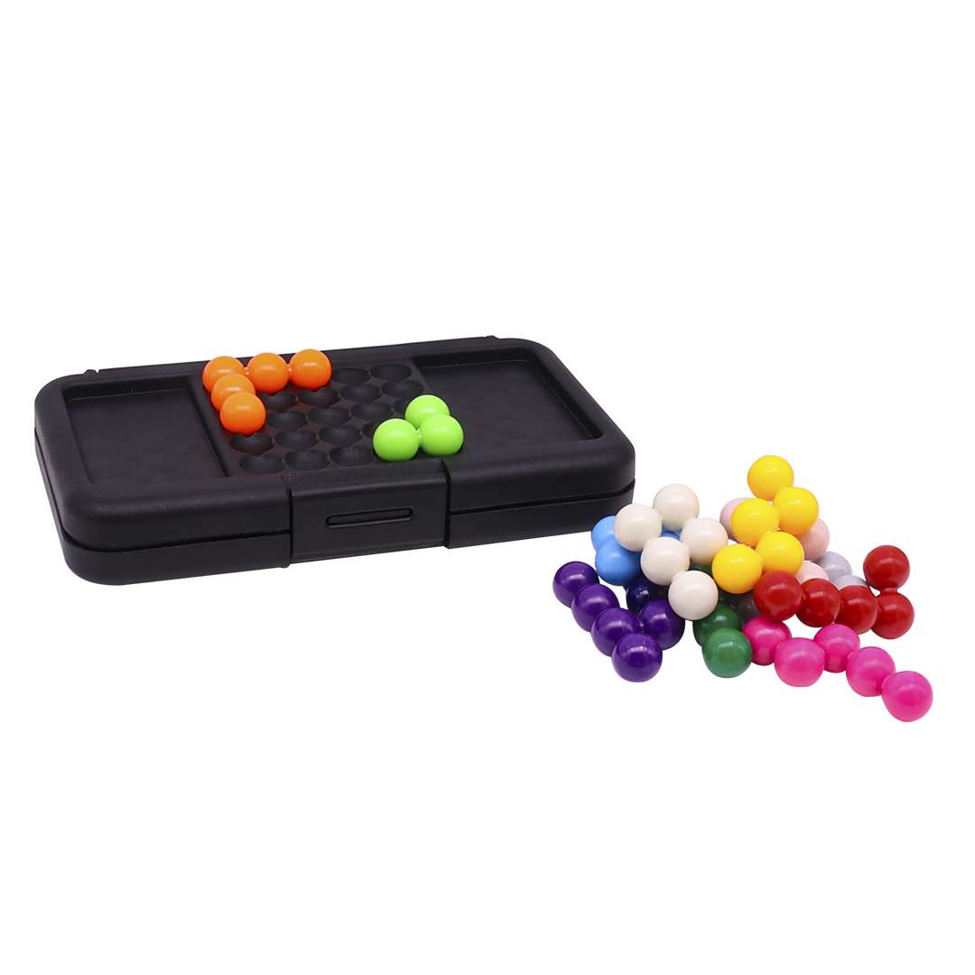 El juego de mesa educativo Kanoodle, una combinación perfecta de estrategia y diversión. Este rompecabezas viene en un elegante estuche plástico negro, ideal para transportarlo cómodamente. Incluye una bandeja de juego en su interior con ranuras para las piezas, y una bandeja pequeña en el exterior del estuche, que facilita el juego y un vibrante libro a todo color de 34 páginas, con 200 rompecabezas para desafiar la mente. Las 12 piezas de colores, con distintos tipos de formas esféricas en 3D, que permiten explorar infinitas combinaciones.