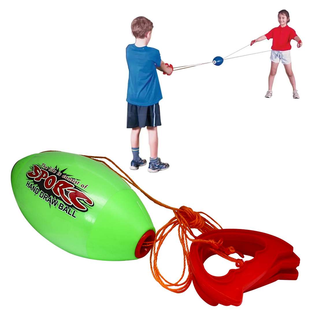 - Contiene una pelota de plástico forma rugby con cuerdas y 4 asas anatómicas.