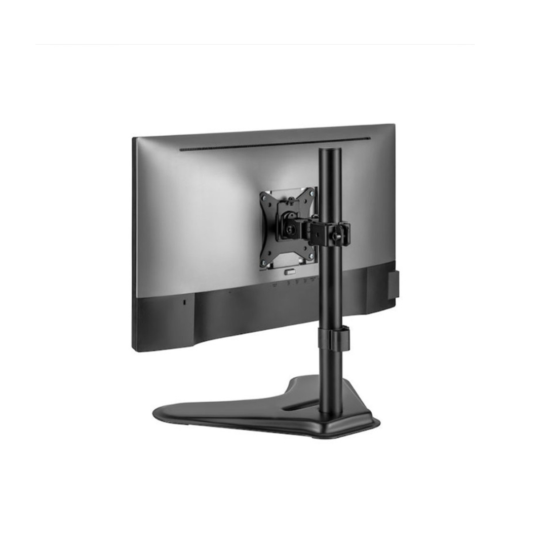 Con una estructura de acero duradera, el LDT66-T01 proporciona un soporte estable para un solo monitor de 17″ a 32″ de hasta 9 kg (19,8 lbs). Diseño flexible para ajuste y ángulos de visión amplios, ajustable para la orientación vertical u horizontal. La base independiente proporciona estabilidad y apoyo en cualquier superficie de trabajo. Una placa VESA desmontable para facilitar la instalación. Una ranura cómoda para celular situada en la base. Clips para cables incluidos para un lugar de trabajo organizado y libre de desorden.