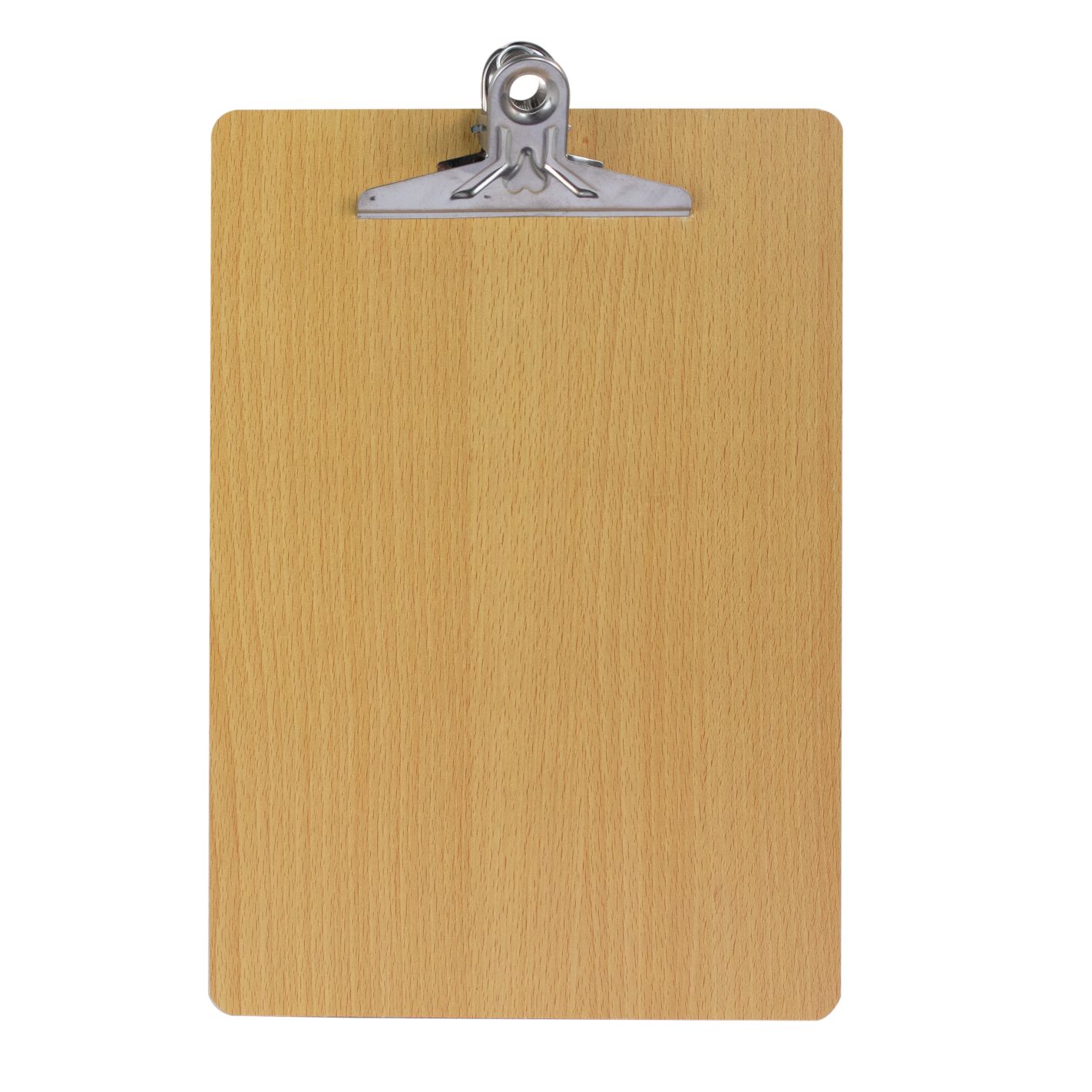 Tabla de madera melamínica con pinza aprieta papeles cromada.