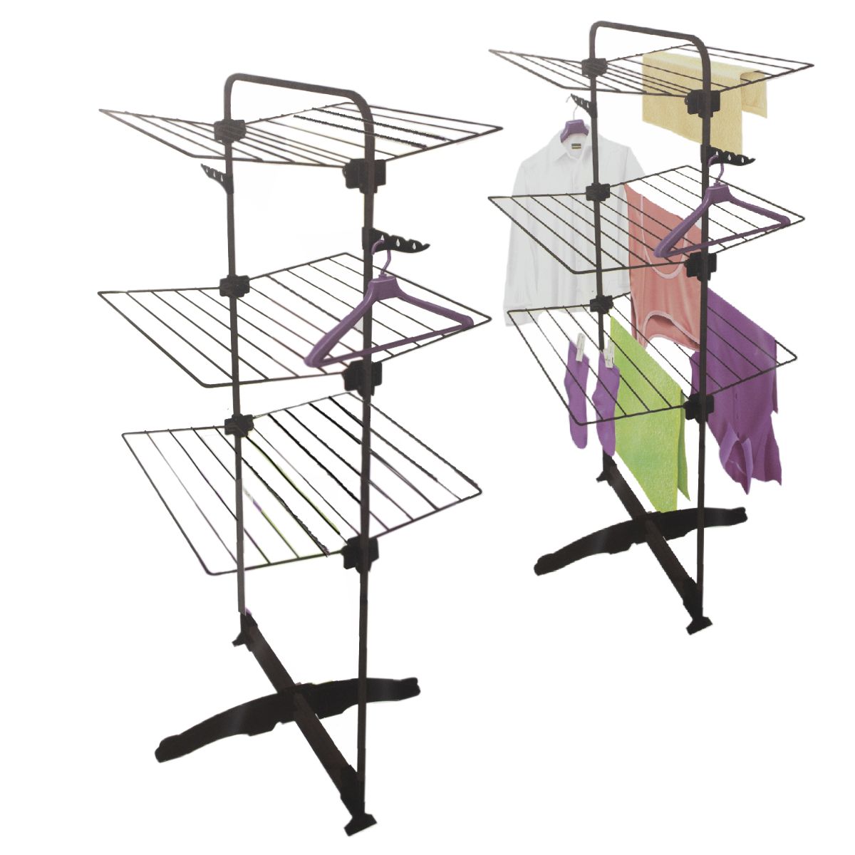Diseño Inteligente: El Tendedero de Pie Coliseu Negro 3 Niveles cuenta con tres niveles de secado, lo que te permite optimizar el espacio y colgar múltiples prendas al mismo tiempo. ¡Di adiós a las pilas de ropa mojada!